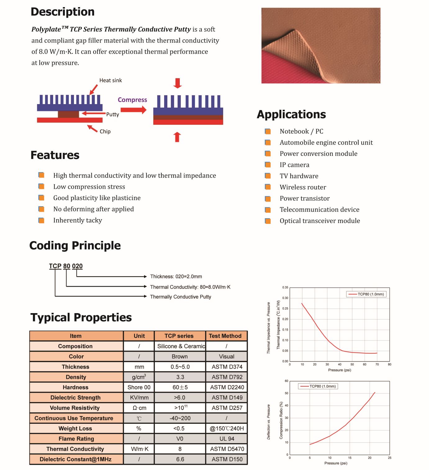TM TCP系列導熱泥是一種柔軟的具有導熱性的柔性間隙填充材料。導熱系數(shù)為8.0 W/m·K,可以在低壓下提供卓越的熱性能。" />